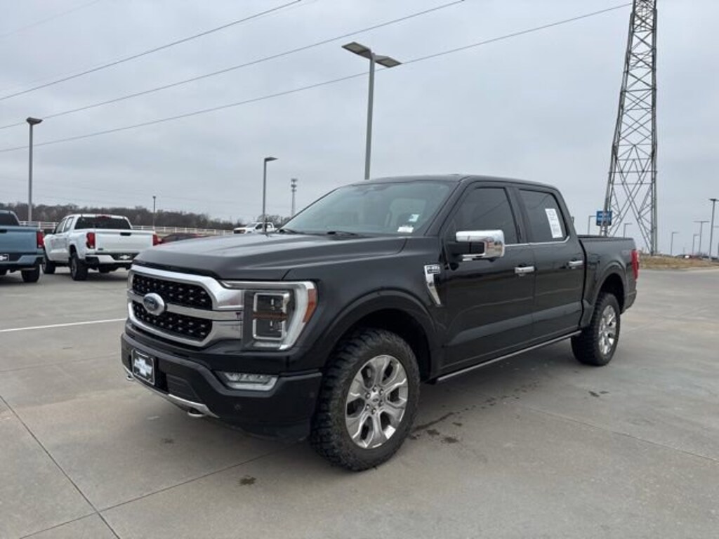 ** LOCAL TRADE IN **, **CERTIFIED BY CARFAX 1 OWNER**, **CERTIFIED BY CARFAX NO ACCIDENTS**, ** 4X4**, F-150 Platinum, 4D SuperCrew, 3.5L V6 EcoBoost, 10-Speed Automatic, 4WD, Black, Black w/Leather Trim Seats, 360 Degree Camera, Active Park Assist 2.0, Air Conditioning, Auto-dimming door mirrors, Automatic temperature control, BlueCruise Hands-Free Driving, Bumpers: body-color, Equipment Group 701A High, Ford Co-Pilot360 Active 2.0 Package, Front Bucket Seats, Front Center Armrest, Heated front seats, Heated rear seats, Memory seat, Navigation system: Connected Navigation (90-Day Trial), Pedal memory, Power driver seat, Power steering, Power Tailgate, Power windows, Pro Trailer Backup Assist, Radio: B&O Unleashed Sound System by Bang & Olufsen, Rear reading lights, Rear seat center armrest, Remote keyless entry, Steering wheel memory, Steering wheel mounted audio controls, SYNC 4 w/Enhanced Voice Recognition, Tachometer, Telescoping steering wheel, Tilt steering wheel, Tow Technology Package, Turn signal indicator mirrors.