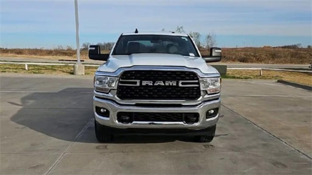 2500 Big Horn, 4D Crew Cab, 6.4L V8, 8-Speed Automatic, 4WD, Bright White Clearcoat, Diesel Gray/Black Cloth, 2 Way Rear Headrest Seat, 2nd Row In Floor Storage Bins, 4 Way Front Headrests, 40/20/40 Split Bench Seat, 4G LTE Wi-Fi Hot Spot, 6 Speakers, 8.4 Touchscreen Display, 9 Alpine Speakers w/Subwoofer, Active Noise Control System, Apple CarPlay, Auto Power-Folding Mirrors, Bed Utility Group, Big Horn IP Badge, Black Exterior Mirrors, Bluetooth Handsfree Phone & Audio, Center Hub, Compass, Connectivity - US/Canada, Driver door bin, Dual Glove Boxes, Exterior Mirrors Courtesy Lamps, Exterior Mirrors w/Heating Element, Exterior Mirrors w/Supplemental Signals, Foam Bottle Insert (Door Trim Panel), Footwell Courtesy Lamp, For Details, Visit DriveUconnect.com, For More Info, Call 800-643-2112, Forward & Reverse Utility Lights, Front Armrest w/Cupholders, Front Center Seat Cushion Storage, Front Fog Lamps, Front License Plate Bracket, Front reading lights, Front Seat Back Map Pockets, Global Telematics Box Module (TBM), Glove Box Lamp, Google Android Auto, GPS Antenna Input, Heated door mirrors, Integrated Center Stack Radio, Integrated Voice Command w/Bluetooth, Leather Wrapped Steering Wheel, LED Bed Lighting, Level 1 Equipment Group, Locking Lower Glove Box, Manual Adjust 4-Way Front Passenger Seat, Manufacturer's Statement of Origin, Mirror Running Lights, MOPAR Deployable Bed Step, MOPAR Spray In Bedliner, Power 2-Way Driver Lumbar Adjust, Power Adjust 8-Way Driver Seat, Power Adjust Mirrors, Power Adjustable Convex Aux Mirrors, Power door mirrors, Power Heated Fold Telescope Mirrors, Power Telescoping Mirrors, Premium Cloth 40/20/40 Bench Seat, Protection Group, Quick Order Package 2GZ Big Horn, Radio data system, Radio: Uconnect 3 w/5 Display, Radio: Uconnect 5 W w/8.4 Display (A62), Rear 60/40 Folding Seat, Rear Dome w/On/Off Switch Lamp, Rear step bumper, Remote USB Port - Charge Only, Selectable Tire Fill Alert, SiriusXM Radio Service, SiriusXM Satellite Radio, Steering Wheel Mounted Audio Controls, Storage Tray, Tow Hooks, Turn signal indicator mirrors, Wheels: 18 x 8.0 Polished Aluminum.